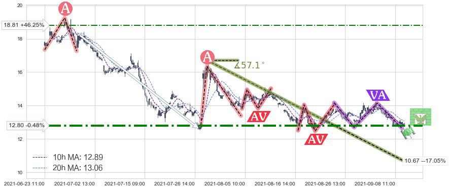 ♞ 10小时均线:12.89,20小时均线:13.06→ 快线<慢线