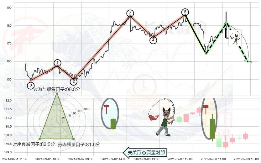 ➢ 🕰 价格走势在2021-09-07 14:00:00至2021-09-08 09:00:00期间形成吊颈线(上吊线),残存影响值:-7.11