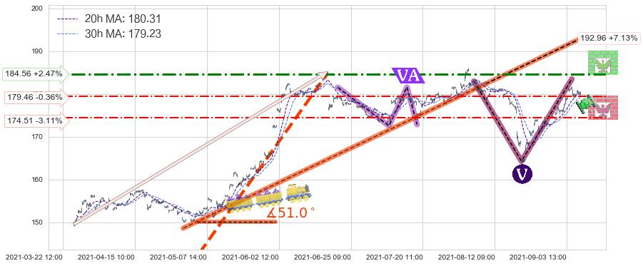 ♘ 阻力价格位184.56,可信任强度61.86%,距离最后交易2021-09-09 14:00形成的收盘价格180.11相差 +2.47%