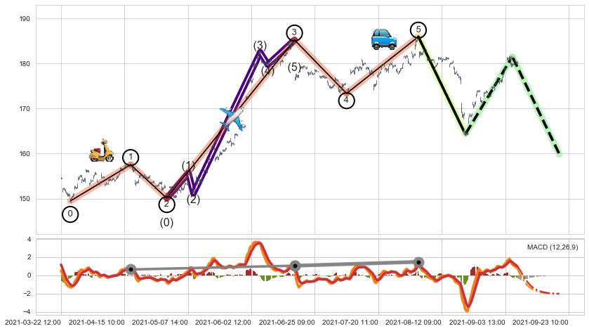 ➣ 波浪理论:猜想b点持续蓄力下跌至c点 → 下跌 → 风险信号 → 小趋势跟踪