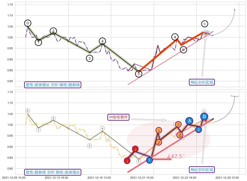 从2021-12-20 11:00至2021-12-27 16:00,共包含36个小时,阶段股价上涨18.95%,阶段股价变动位移路程比: 1 : 2