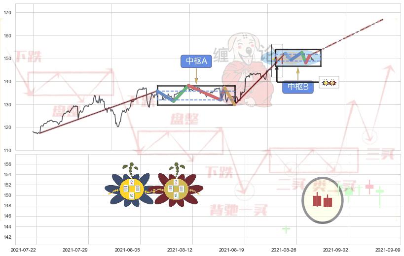 ➢ 【中枢A】:07-29:09-08-18:14,中枢由6笔构成,共100交易小时, ZG=135.84, ZD=131.95
