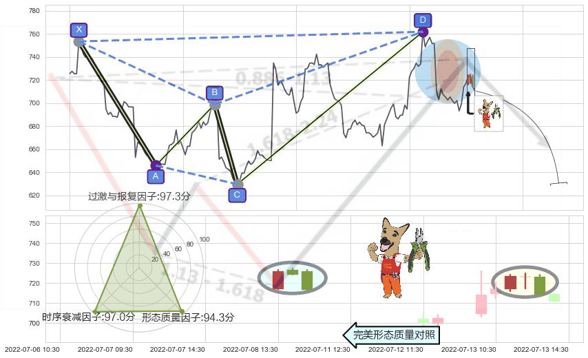 ➢ 🕰 价格走势在2022-07-07 11:30:00至2022-07-07 11:30:00期间形成看跌(高位倒锤头)流星线,残存影响值:-5.54