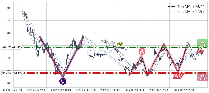 ♘ 阻力价格位742.72,可信任强度75.79%,距离最后交易2022-07-13 14:30形成的收盘价格710.65相差 +4.51%