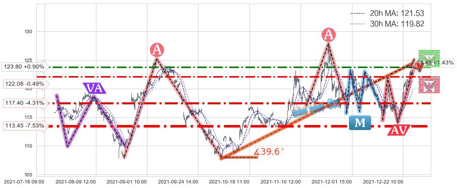 ♘ 阻力价格位123.80,可信任强度63.29%,距离最后交易2021-12-27 15:00形成的收盘价格122.69相差 +0.90%