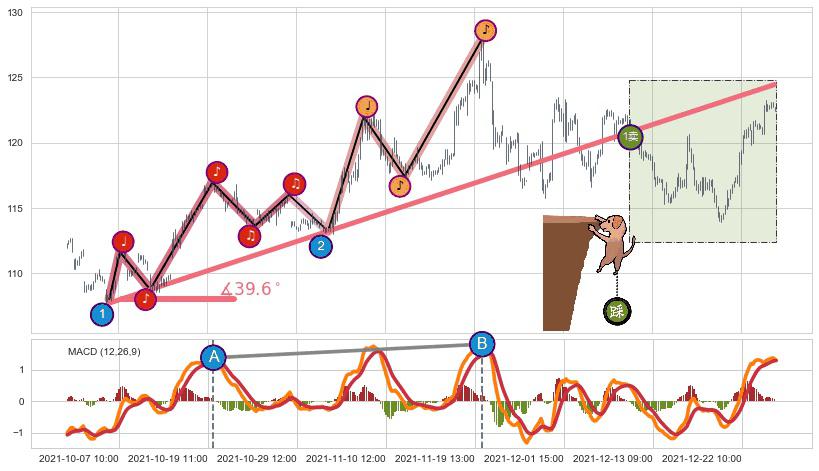 从2021-12-14 12:00至2021-12-27 15:00,共包含60个小时,阶段股价上涨6.04%,阶段股价变动位移路程比: 1 : 4