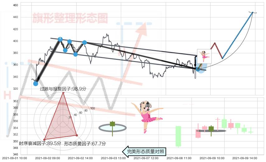 ➣ 【未确认突破,预测即将形成突破】降⚑旗形起点:06-16:13, 预测突破点:09-14:12,形态共383交易小时