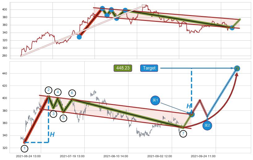 ➣ 最小中继整理涨幅→𝐇: 74.02 (𝐇旗杆的长度:旗杆起点→顶点)
