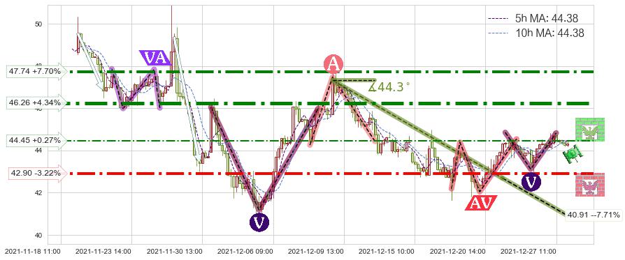 ♘ 阻力价格位44.45,可信任强度45.97%,距离最后交易2021-12-27 15:00形成的收盘价格44.33相差 +0.27%