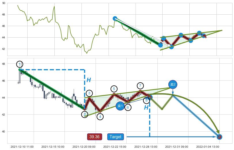 ➢ AI预测: 假定反转如期而至,第❶价格目标位置(12-28:10, 43.83)