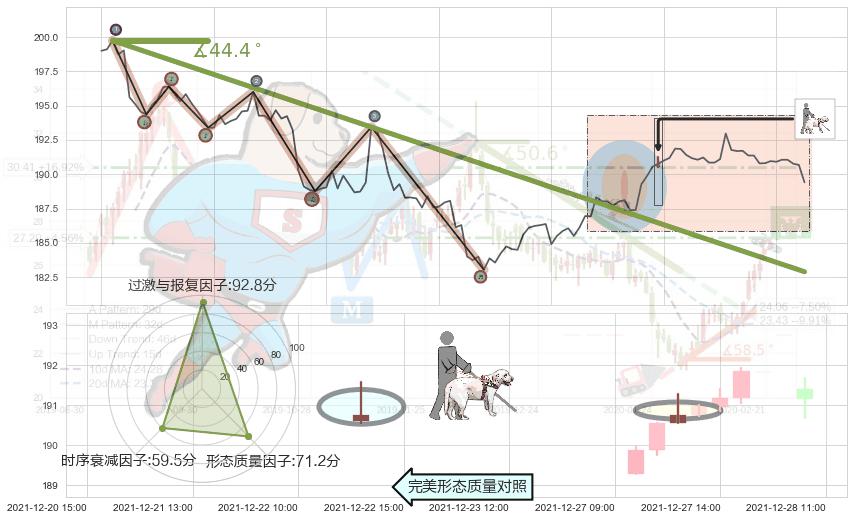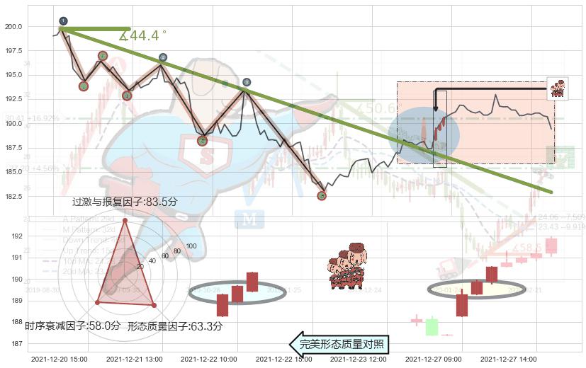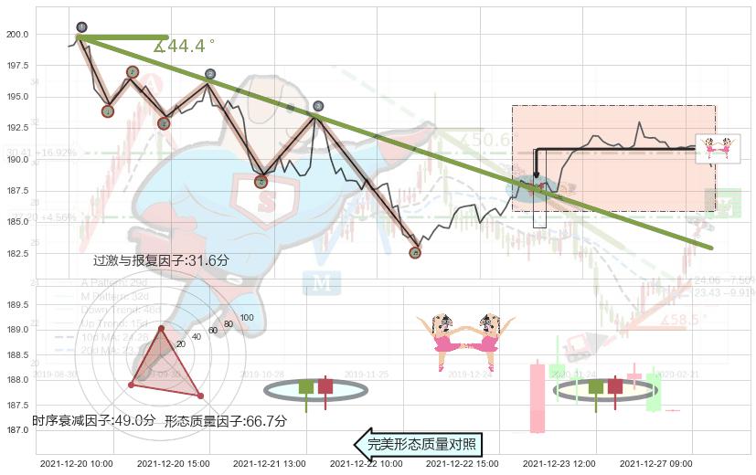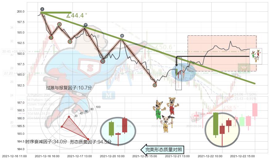 ➢ 2021-12-07 13:00-2021-12-20 13:00下跌趋势存在反转上涨[机会],其原下跌趋势的阻力位(182.89)已被突破[强支撑信号],原下跌趋势角度: 44.4˚