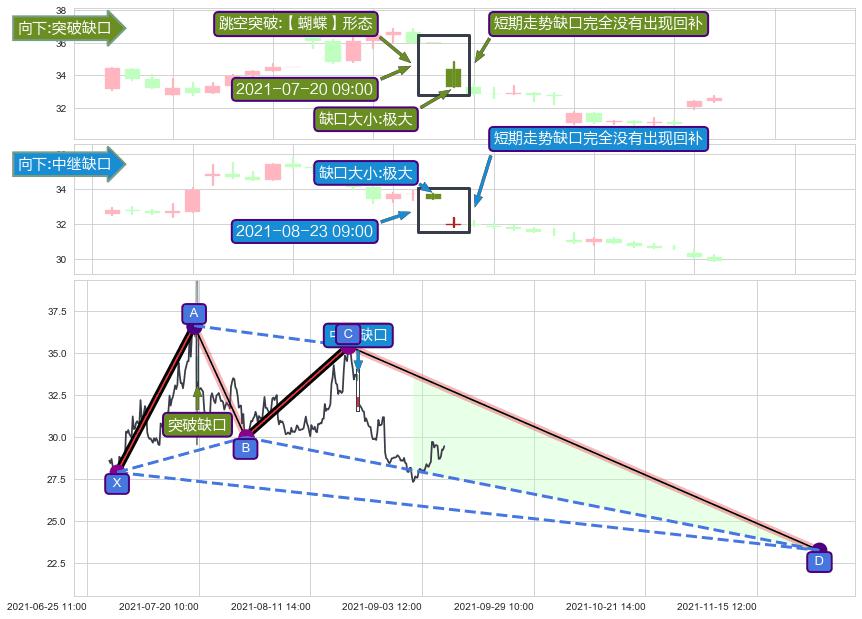 ➢ 【蝴蝶】形态 🔜 中继缺口 🔜 突破缺口 综合量化分数:38.55 【偏空】