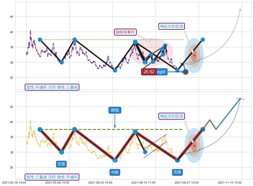➢ 升旗形属【短级别信号事件】三重底属【长级别信号事件】长短周期组合信号事件, 短长事件长度比20.85%