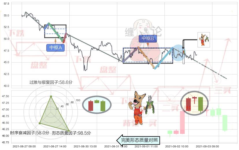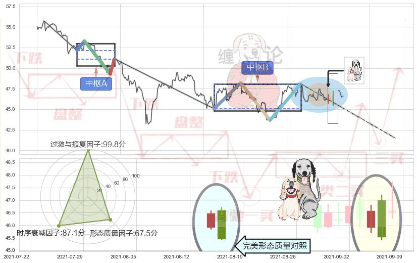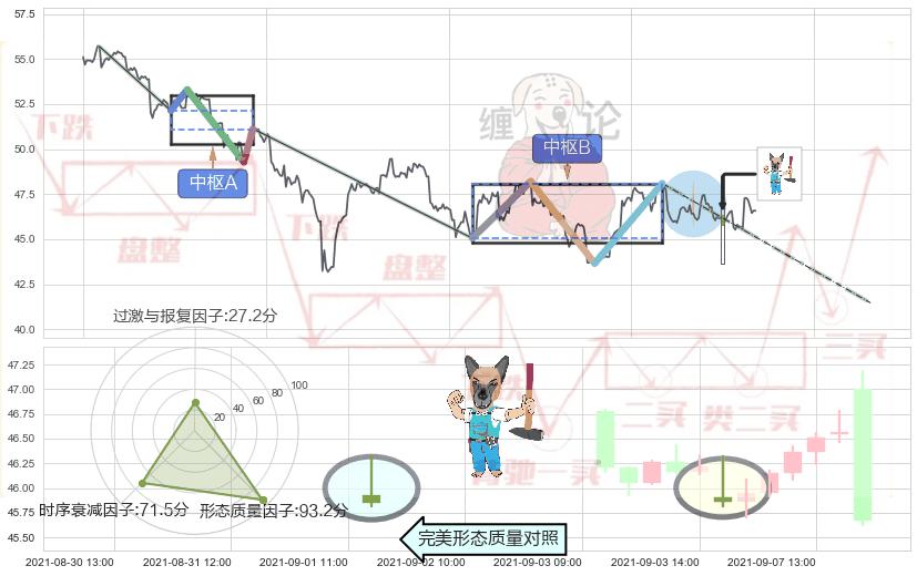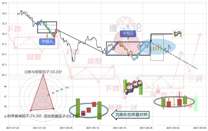 ➢ 下跌镊子线(n形磁铁) 🔜 缠论中枢点破位中枢B支撑下拉 综合量化分数:46.55 【中性】