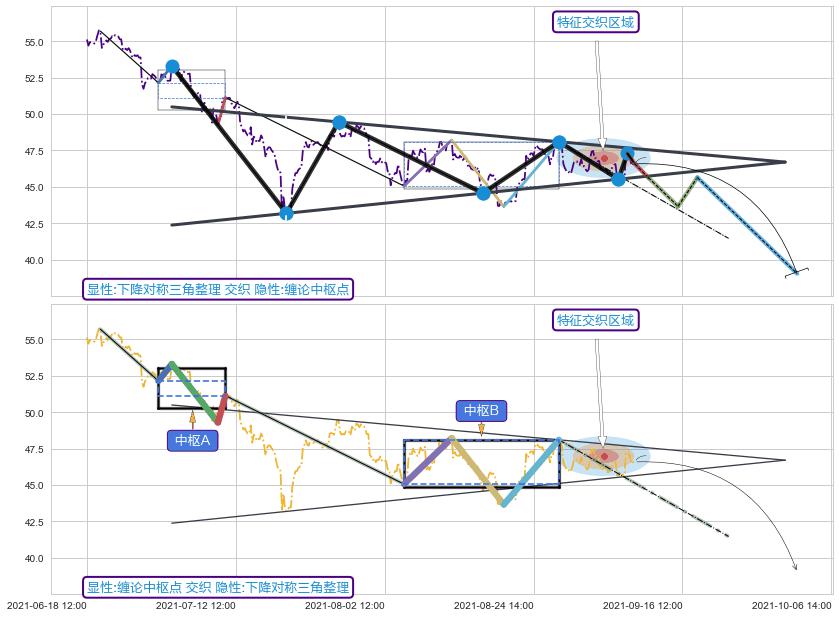 ➢ 下降对称三角整理与缠论中枢点信号事件周期长度级别相同,同周期信号事件