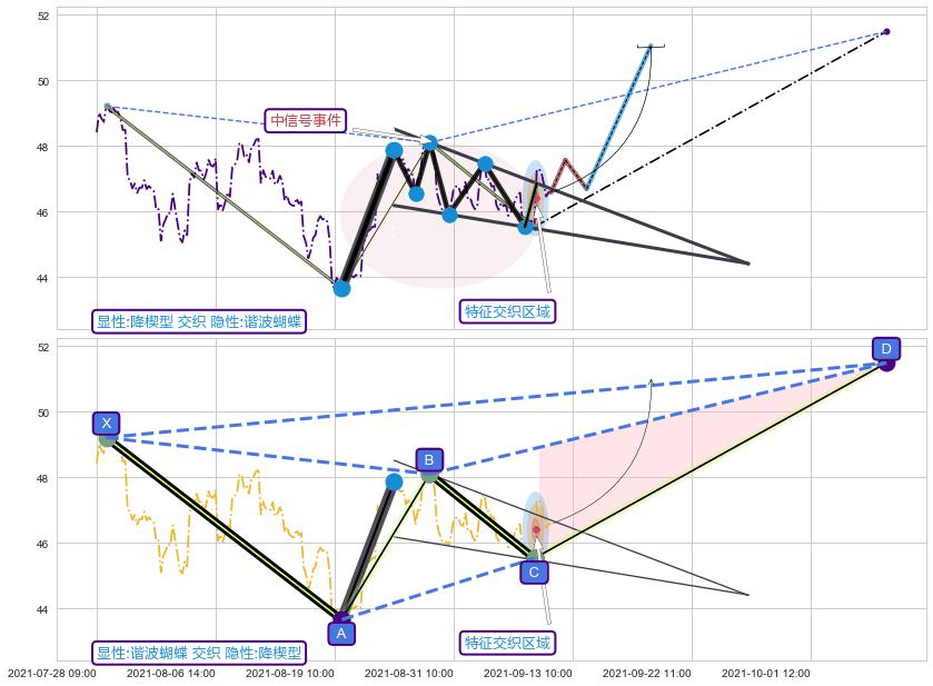 ➢ 降楔型属【中级别信号事件】谐波蝴蝶属【长级别信号事件】中长周期组合信号事件,中长事件长度比44.15%