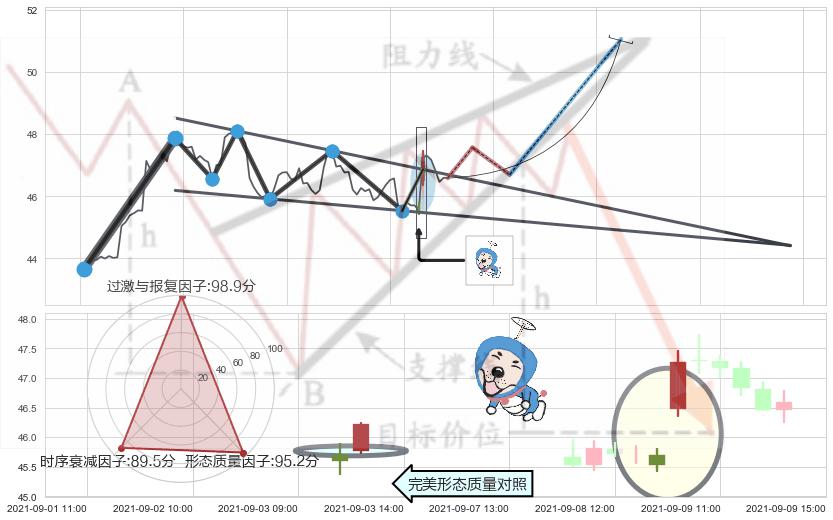 ➢ 【买1】: 激进型 买点 →(09-09:09: 46.86 )形成突破降🚩楔型【整理】形态