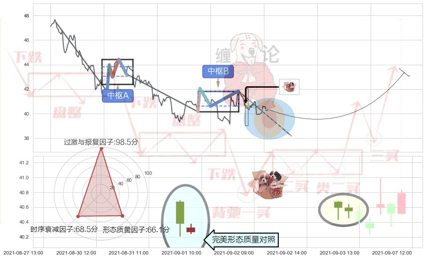 ➢ 【中枢B】:08-24:14-09-02:10,中枢由4笔构成,共39交易小时, ZG=41.84, ZD=40.61