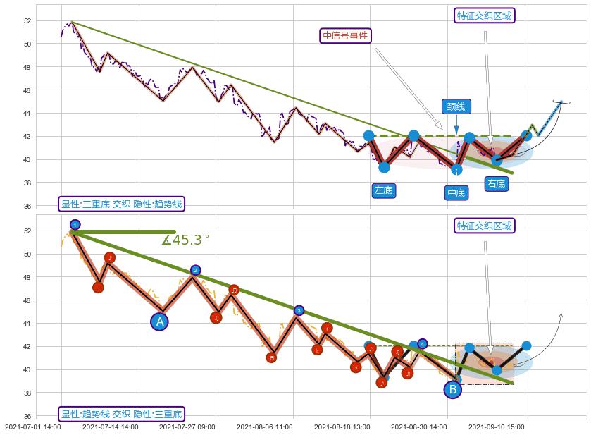 ➢ 最后的下跌趋势2021-07-06 09:00至2021-09-02 09:00:存在突破迹象,后续小反弹或者反转上涨