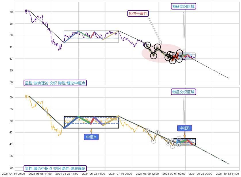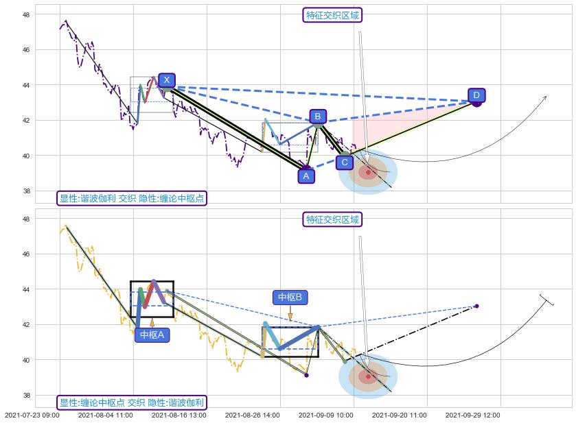 ➣ 缠论中枢点:猜想破位中枢B后持续下拉 → 下跌 → 破位中枢B支撑 → 持续趋势跟踪