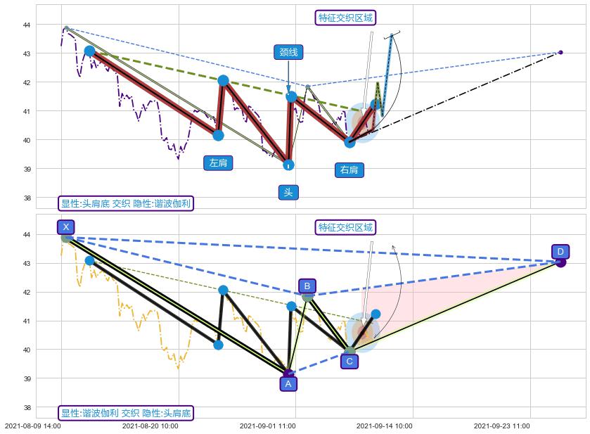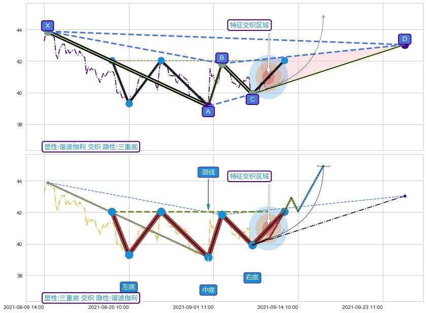 ➢ 头肩底与谐波伽利信号事件周期长度级别相同,同周期信号事件