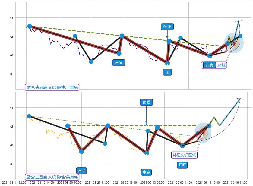 ➢ 头肩底与三重底信号事件周期长度级别相同,同周期信号事件