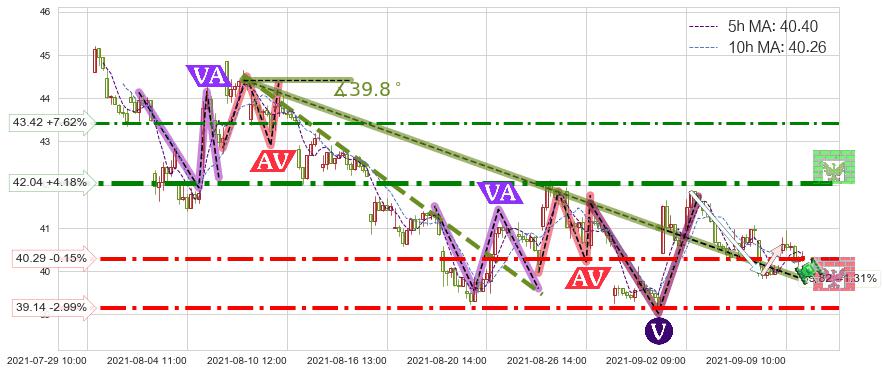 ➢ 【仅预测突破】最后价格:40.35与预测突破价格:41.24→【空间临近】后续最小【反转】第一目标价格→(09-10:15: 43.64 )