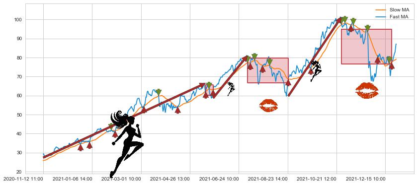 05-14 09:00至05-24 11:00 慢线与快线多次接触,存在上下穿越,有缠绕