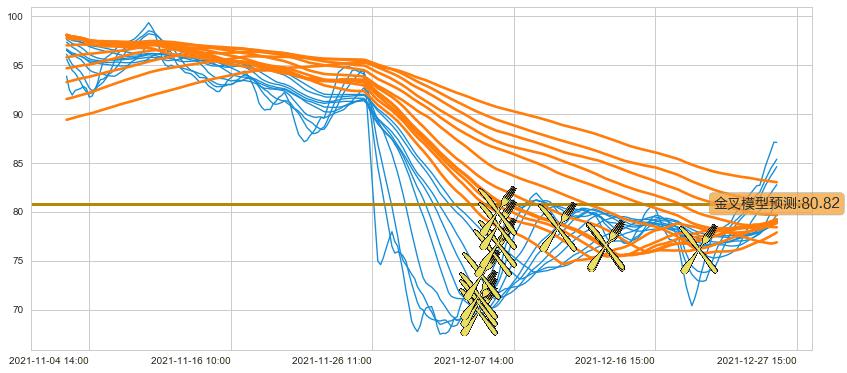 ➣ 90小时均线于(12-14 11:00: 76.54)形成【金叉】基于【金叉历史模型】预测金叉后最高波峰价格: 81.01, 金叉后最高价格87.53,已经上涨超出预测最高波峰价格, 预期回调