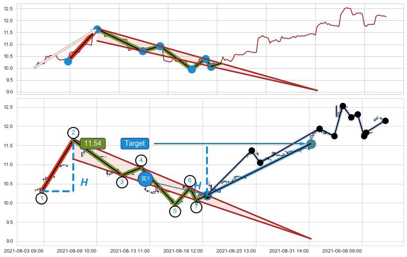 ➢ 最小中继整理涨幅→𝐇: 1.3450 (𝐇楔型旗杆的长度:楔型起点→顶点)