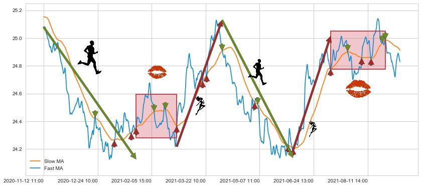 01-27 09:00至02-26 10:00 慢线与快线多次接触,存在上下穿越,有缠绕
