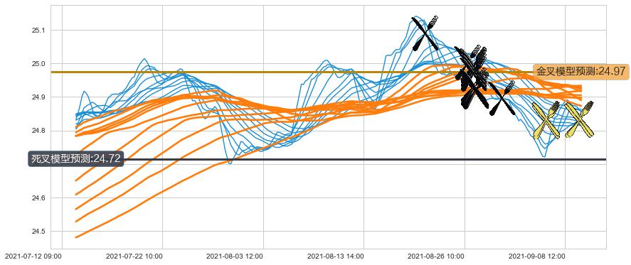 ➢ 95小时均线于(08-26 14:00: 24.98)形成【死叉】基于【死叉历史模型】预测死叉后最低波谷价格: 24.78, 死叉后最低价格24.71,已经下跌超出预测最低波谷价格, 预期反弹