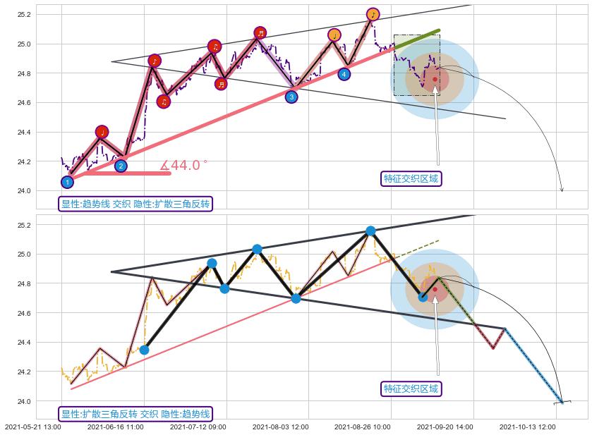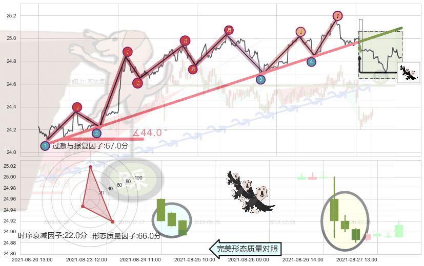 ➢ 2021-05-25 13:00-2021-08-27 10:00上升趋势存在反转[风险],其原上升趋势的支撑位(25.09)已破位[强阻力信号],原上升趋势角度: 44.0˚
