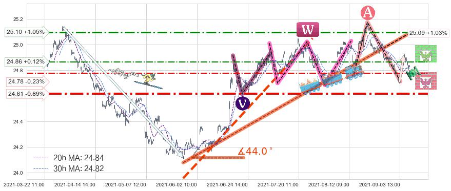 ♘ 支撑价格位24.61,可信任强度71.47%,距离最后交易2021-09-09 14:00形成的收盘价格24.84相差 -0.89%