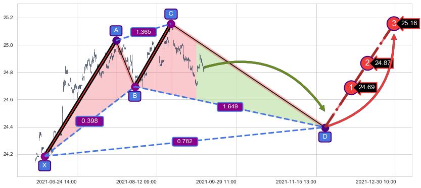 ➣ D点拟合预测价格24.40,距离最后交易收盘价格24.84相差 -1.77%