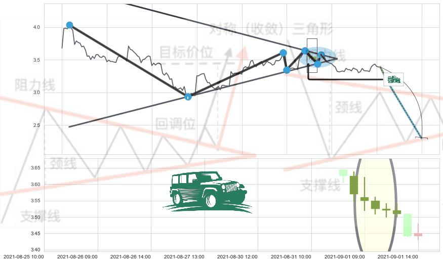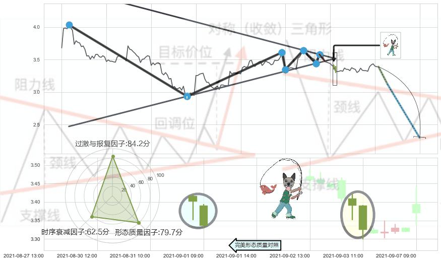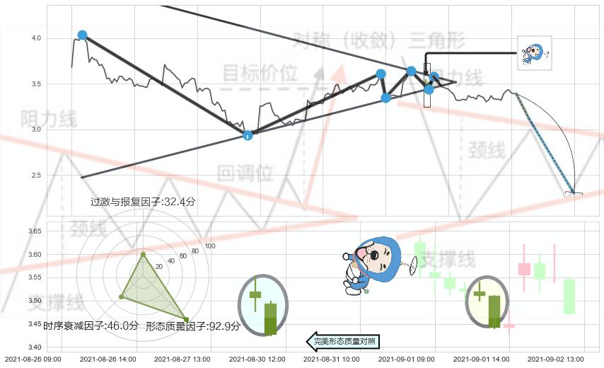 ➢ 【卖1】: 激进型 卖点→(09-02:12: 3.476 )形成突破下降【对称】三角形整理【整理】形态
