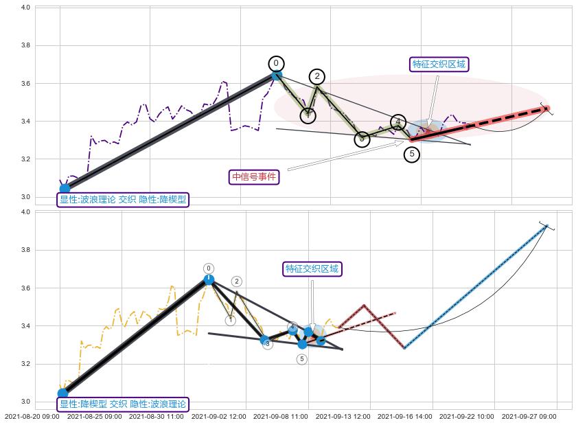 ➢ 波浪理论与降楔型信号事件周期长度级别相同,同周期信号事件