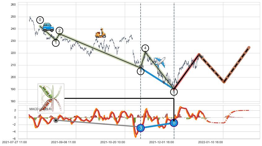 从2021-12-01 16:00至2021-12-27 15:00,共包含120个小时,阶段股价上涨13.82%,阶段股价变动位移路程比: 1 : 3