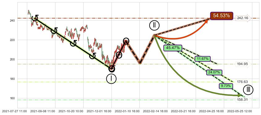 ➣ 循环浪继续向下【平均值】位置(05-05:16, 176.63),匹配聚类样本比例52.93%, 可能性概率24.07%