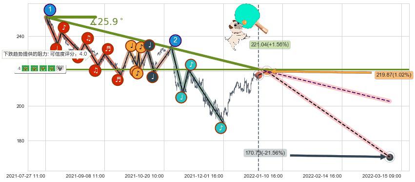 ♘ 阻力价格位217.92,可信任强度87.06%,距离最后交易2021-12-27 15:00形成的收盘价格217.65相差 +0.12%
