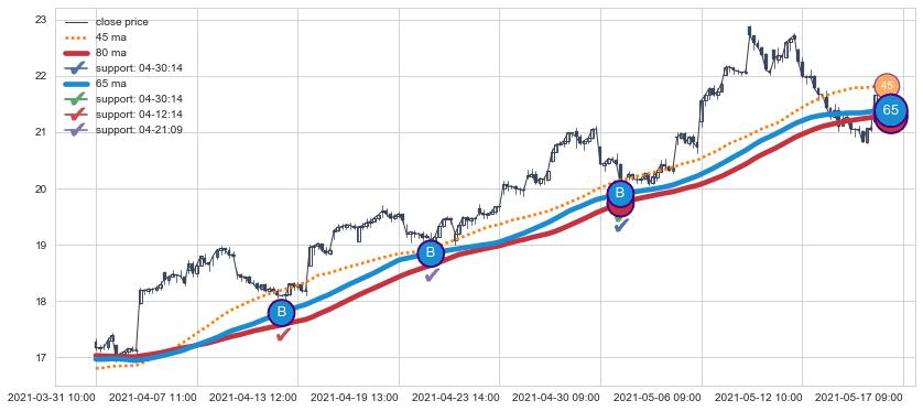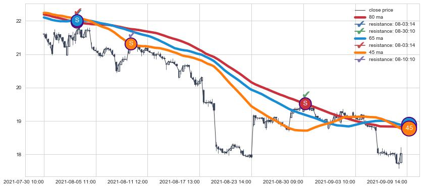 ➢ 最优均线组合共正确确认支撑阻力信号7处,正确确认率 70.00%