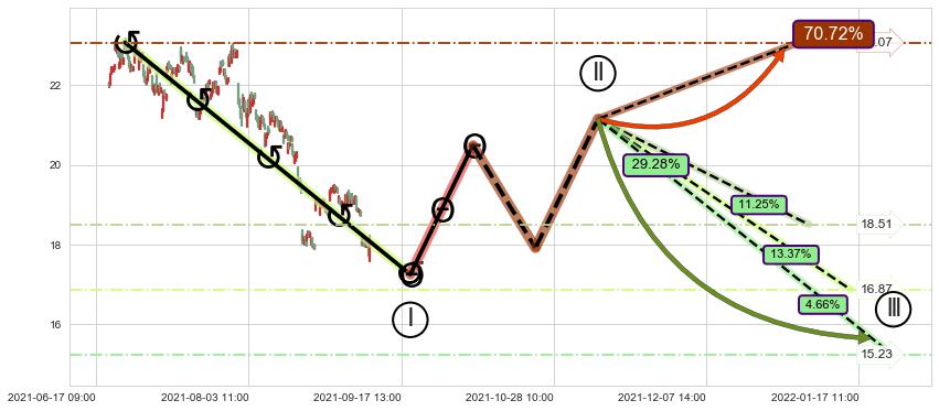 ➣ 循环浪继续向下【平均值】位置(01-13:14, 16.87),匹配聚类样本比例45.66%, 可能性概率13.37%