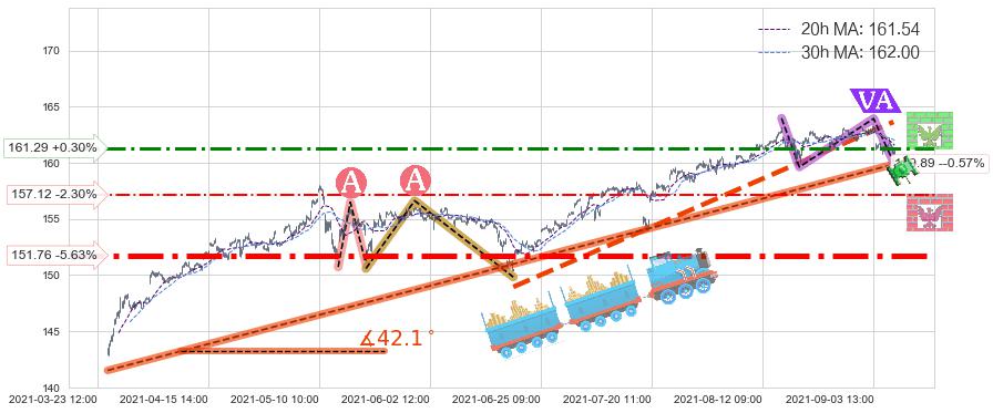 🍖 长线趋势跟踪组合短线均值回复[强支撑信号]2021-03-25 09:00-2021-09-09 13:00上升趋势依然成立(上涨趋势跟踪依然可行),短线价格略微下行回调(均值回复猜想),即将接近趋势提供的未破位的支撑价格:159.89。