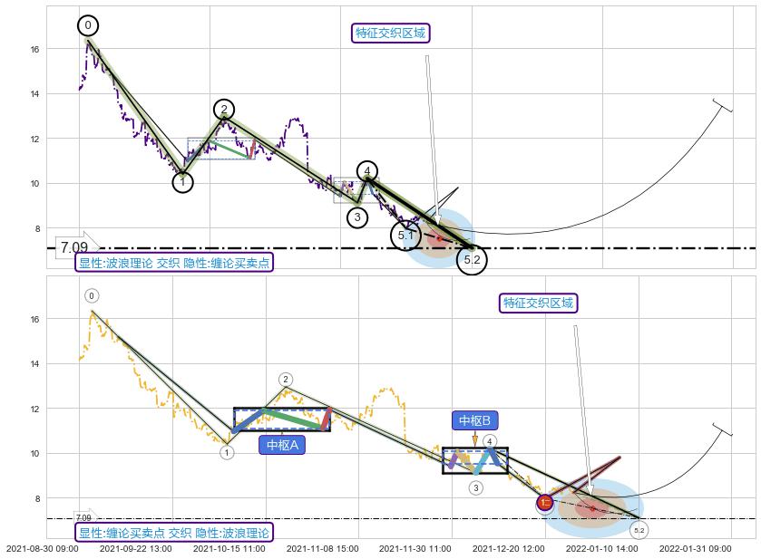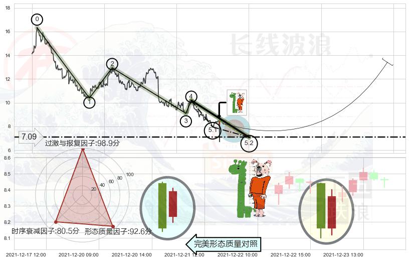 从2021-07-15 14:00至2021-12-27 14:00,共包含719个小时,阶段股价下跌-77.69%,阶段股价变动位移路程比: 1 : 8,下跌趋势角度: 39.1