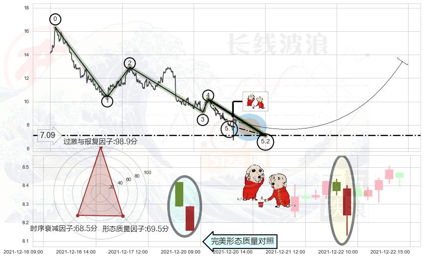 ➢ 🕰 价格走势在2021-12-17 09:00:00至2021-12-17 09:00:00期间形成单针探底(定海神针),残存影响值:5.37