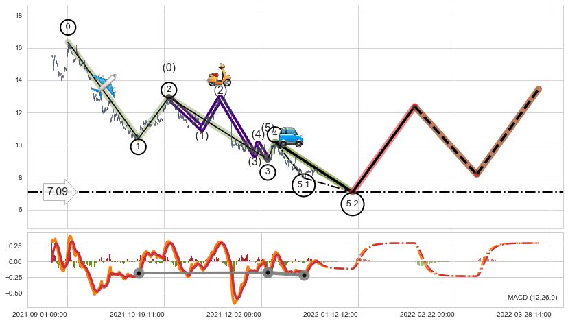 ➢ 5.1: 预测当前第5浪位置(12-20:12, 7.96),仍然有下跌空间