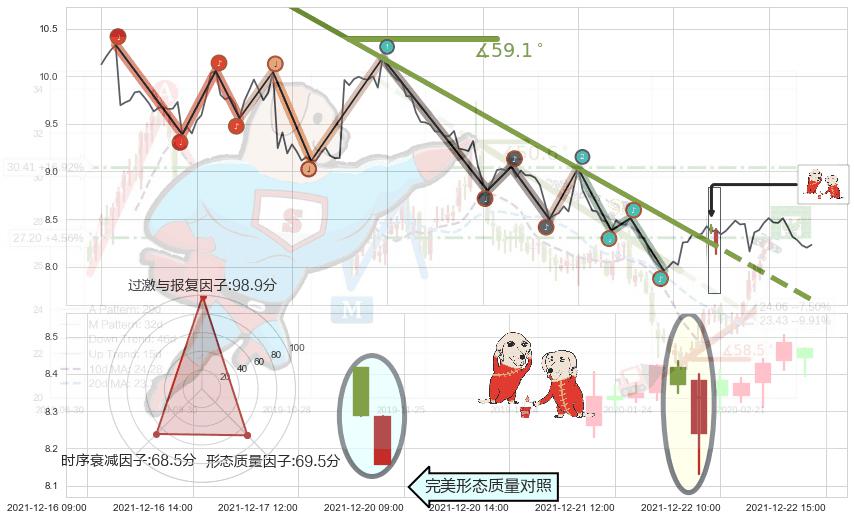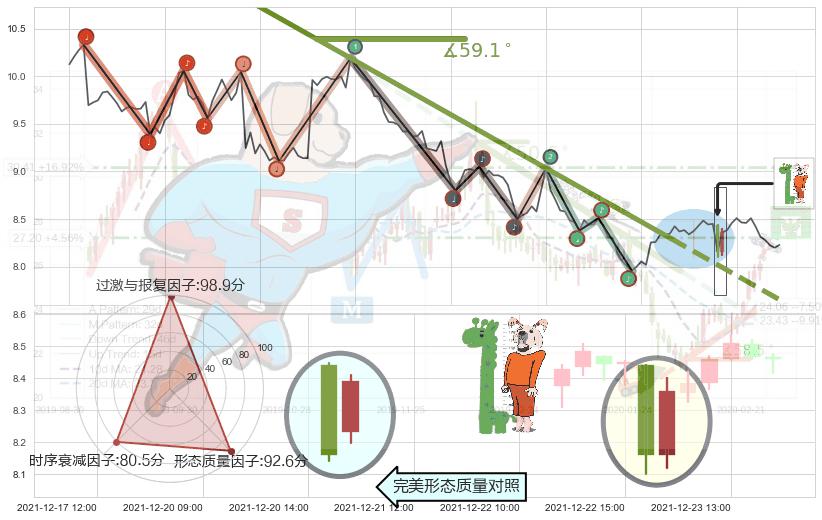 ➢ 2021-11-24 15:00-2021-12-21 13:00下跌趋势存在反转上涨[机会],其原下跌趋势的阻力位(7.65)已被突破[强支撑信号],原下跌趋势角度: 59.1˚