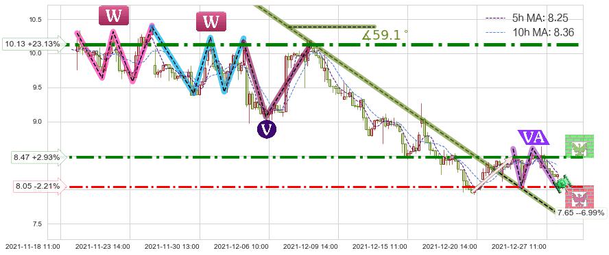 ♞ 5小时均线:8.25,10小时均线:8.36→ 快线<慢线