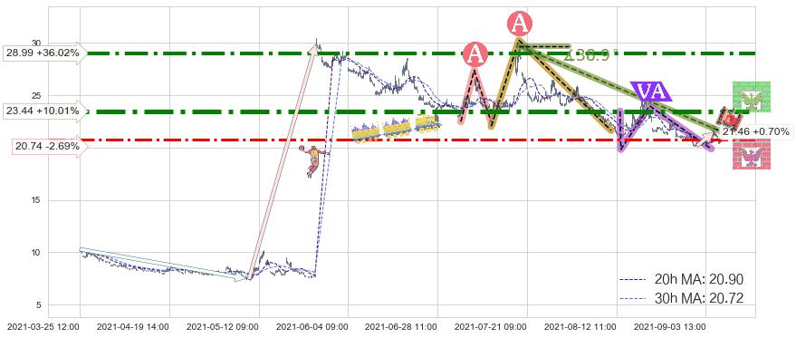 ♘ 阻力价格位23.44,可信任强度90.91%,距离最后交易2021-09-09 14:00形成的收盘价格21.31相差 +10.01%