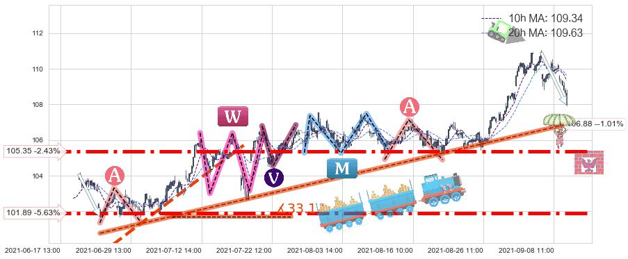 ♞ 10小时均线:109.34,20小时均线:109.63→ 快线<慢线